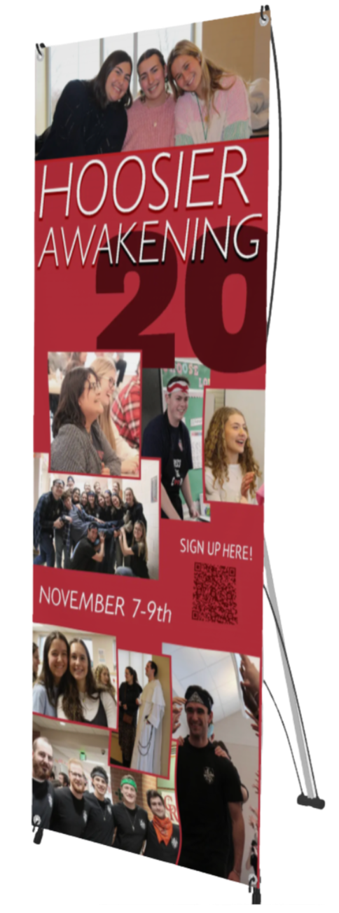 For the Hoosier Awakening 20 retreat L-banner, it was important to convey themes of community, fellowship, and personal identity. I emphasized Saint Paul’s brand red while using layered text, images, and borders to create depth and visual interest, ensuring the design felt bold and inviting.